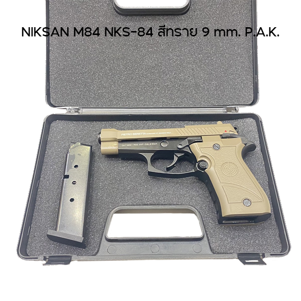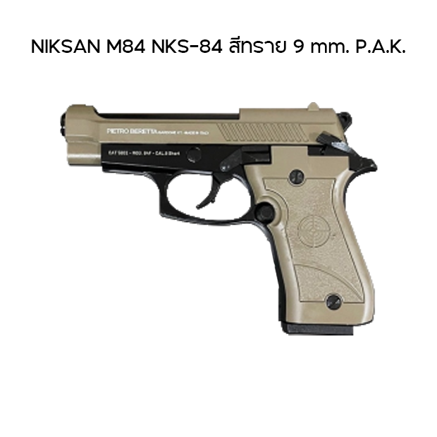 BLANKGUN NIKSAN NKS 84 (BARETTA M84) 9 MM. P.A.K. สีทราย แถมลูก10นัด